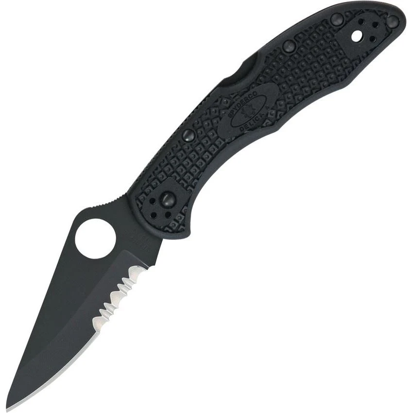 - Spyderco 11PSBBK – Delica 4 Part Serrated Blade Lockback Folding Pocket Knife