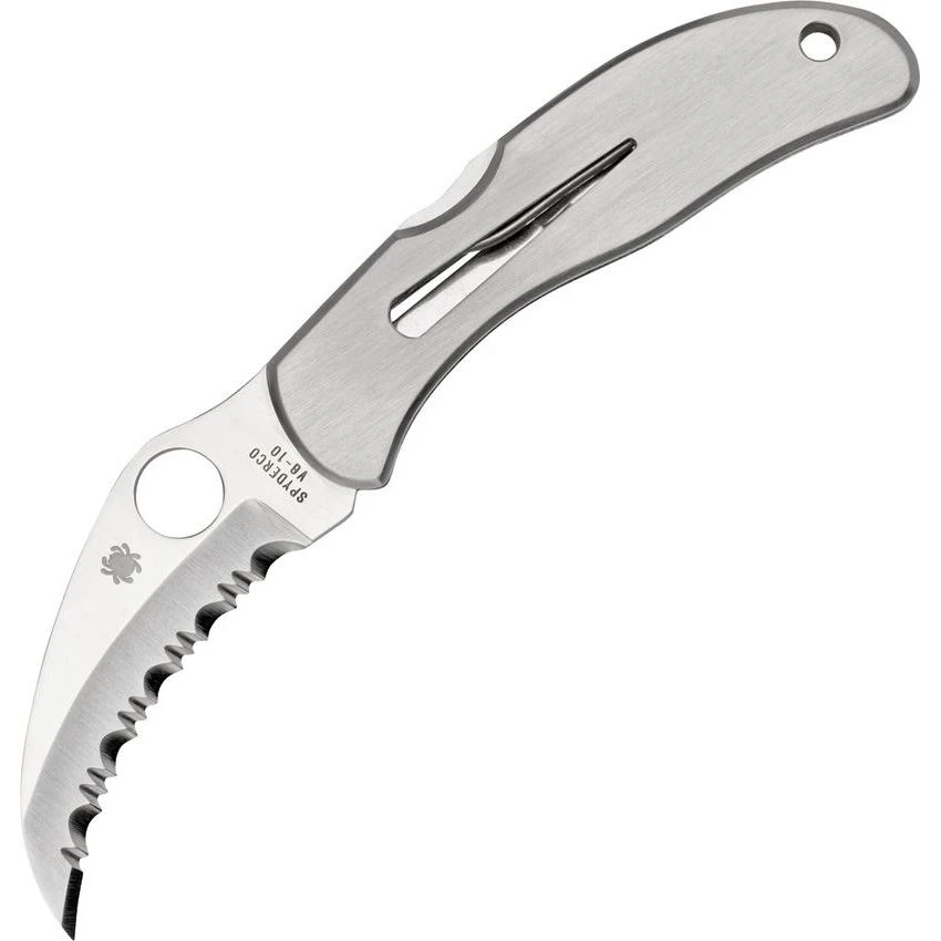 - Spyderco 8S – HarPY Lockback Folding Hawkbill Blade Pocket Knife with Stainless Handles