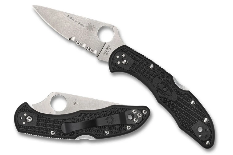 Unlike the standard expression of this model, the VG-10 stainless steel blade combines the low-friction edge geometry of a full-flat grind with the extreme cutting power of Spyderco serrations. It is also laser engraved with the motto “To Serve and Protect” to honor the service and sacrifice of law enforcement professionals.