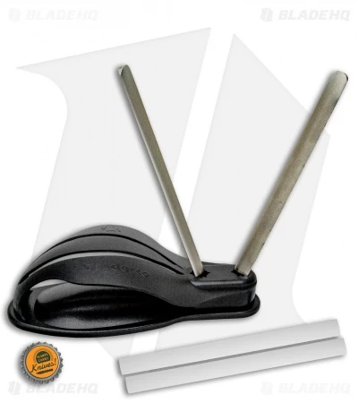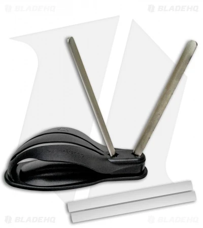 The Spyderco Gauntlet is an innovative sharpener that allows for quick and easy sharpening without a troublesome set up or complex motions. The base has an integrated handguard that ensures that your hand is protected while sharpening your knife. The specially designed rod holes allow you to rotate the rods to expose a fresh new sharpening surface.