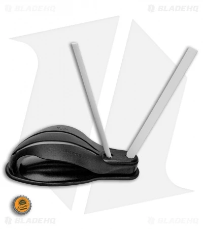 The Spyderco Gauntlet is an innovative sharpener that allows for quick and easy sharpening without a troublesome set up or complex motions. The base has an integrated handguard that ensures that your hand is protected while sharpening your knife. The specially designed rod holes allow you to rotate the rods to expose a fresh new sharpening surface.
