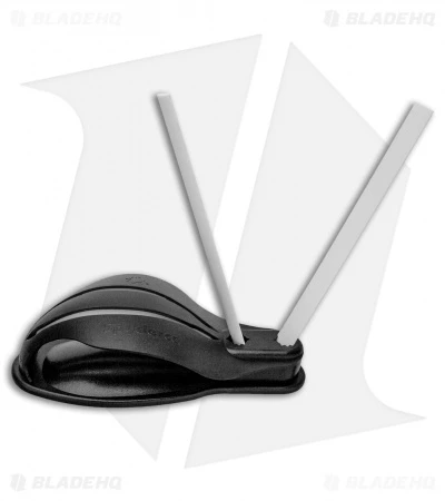 The Spyderco Gauntlet Select comes with two fine ceramic rods and an ABS plastic base with set angle guides.