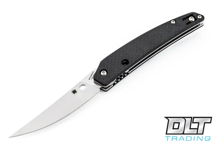 In the closed position, the handles narrow, open-backed profile completely contains the knifes bladeexcept for a small textured section of the tang that serves as a flipper opener. Stroking this section of the blade with an index finger or thumb provides leverage to swiftly pivot it into the open position, where locks securely via Spydercos patented Compression Lock mechanism. The satin-finished CPM S30V stainless steel blade is full-flat ground for exceptional edge geometry and cutting performance and has an acute, scalpel-like point for detailed work.