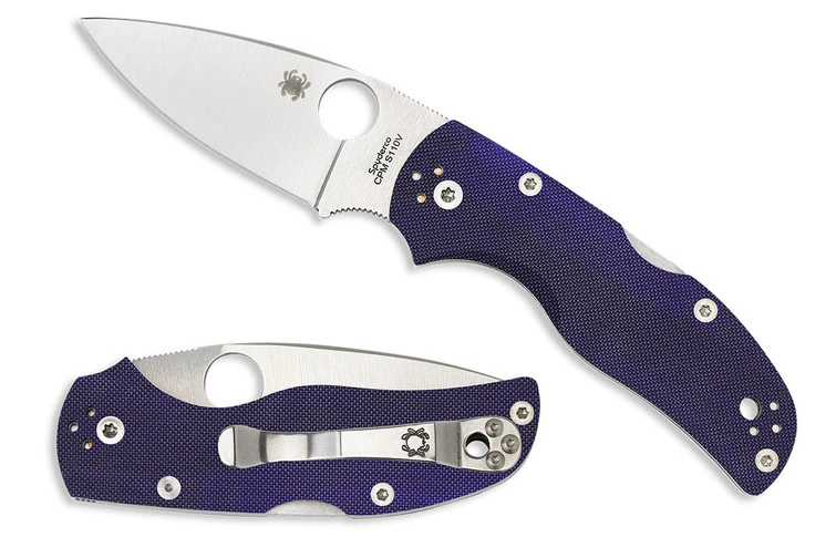 The linerless scales of this knife are meticulously machined from solid textured dark blue G-10 scales that are the signature color of Spydercos elite family of CPM S110V knives. To ensure convenient carry and instant access, the handle includes a broad-based four-position clip that supports left or right-side tip-up or tip-down carry.