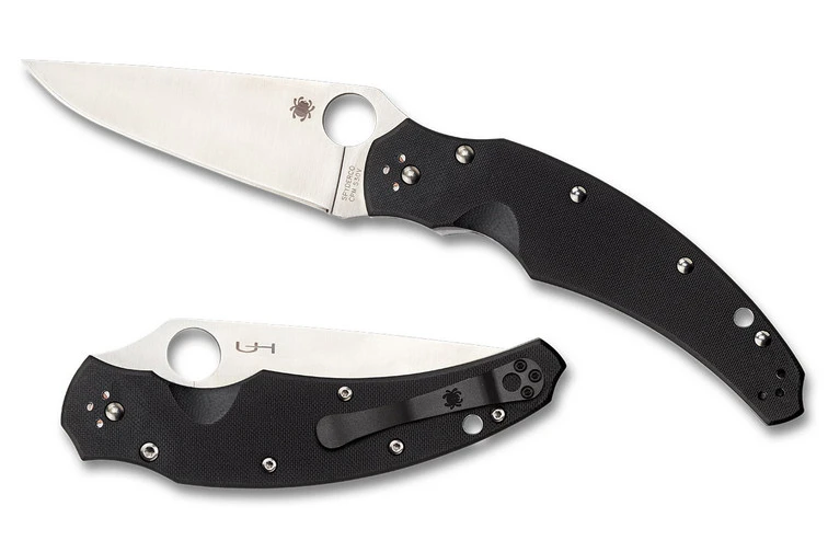 Designed by noted German knifemaker Ulrich Hennicke, the Opus is a versatile, all-purpose folding knife that harmoniously balances Hennickes distinctive personal design style and Spydercos unmistakably classic lines. Its broad, PlainEdge blade is crafted from premium CPM S30V particle metallurgy stainless steel and features a full-flat grind that offers both strength and low-friction cutting performance. The blades oversized Trademark Round Hole is fully accessible with either hand and allows quick, positive one-handed opening. An impressive blend of style and function, the handles advanced ergonomic design and textured G-10 scales support a variety of grip styles and ensure superior control and comfort, even during prolonged use. Its open-backed construction and skeletonized full stainless steel liners keep the knifes weight to a minimum while providing a sturdy foundation for the high-strength LinerLock mechanism. To allow convenient carry and keep the knife poised for immediate access, the Opus features a four-position hourglass clip that supports both left and right-side tip-up and tip-down carry.