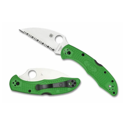 Many savvy knife users swear by Wharncliffe-style blades because their perfectly straight cutting edges offer everything from extreme cutting power to scalpel-like precision. Now that versatility is also fearlessly corrosion resistant in the form of the Salt 2 LC200N Wharncliffe. A powerful combination of advanced handle ergonomics, high-traction Bi-Directional Texturing, a stout back lock mechanism, a four-position pocket clip, a full-flat-ground LC200N blade, and a vibrant green handle color, this compact folder has it all. It is also available in both PlainEdge and fully serrated SpyderEdge formats.