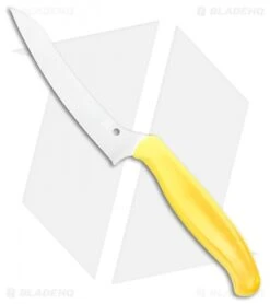 This Spyderco Z-Cut has a yellow handle and a pointed blade with a plain edge.